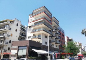 Fourth-floor apartment with a total area of 95.64 sq.m., located on a 400 sq.m. plot in Toumba, Thessaloniki. It consists of an open-plan living room and kitchen, three bedrooms, and a bathroom.
